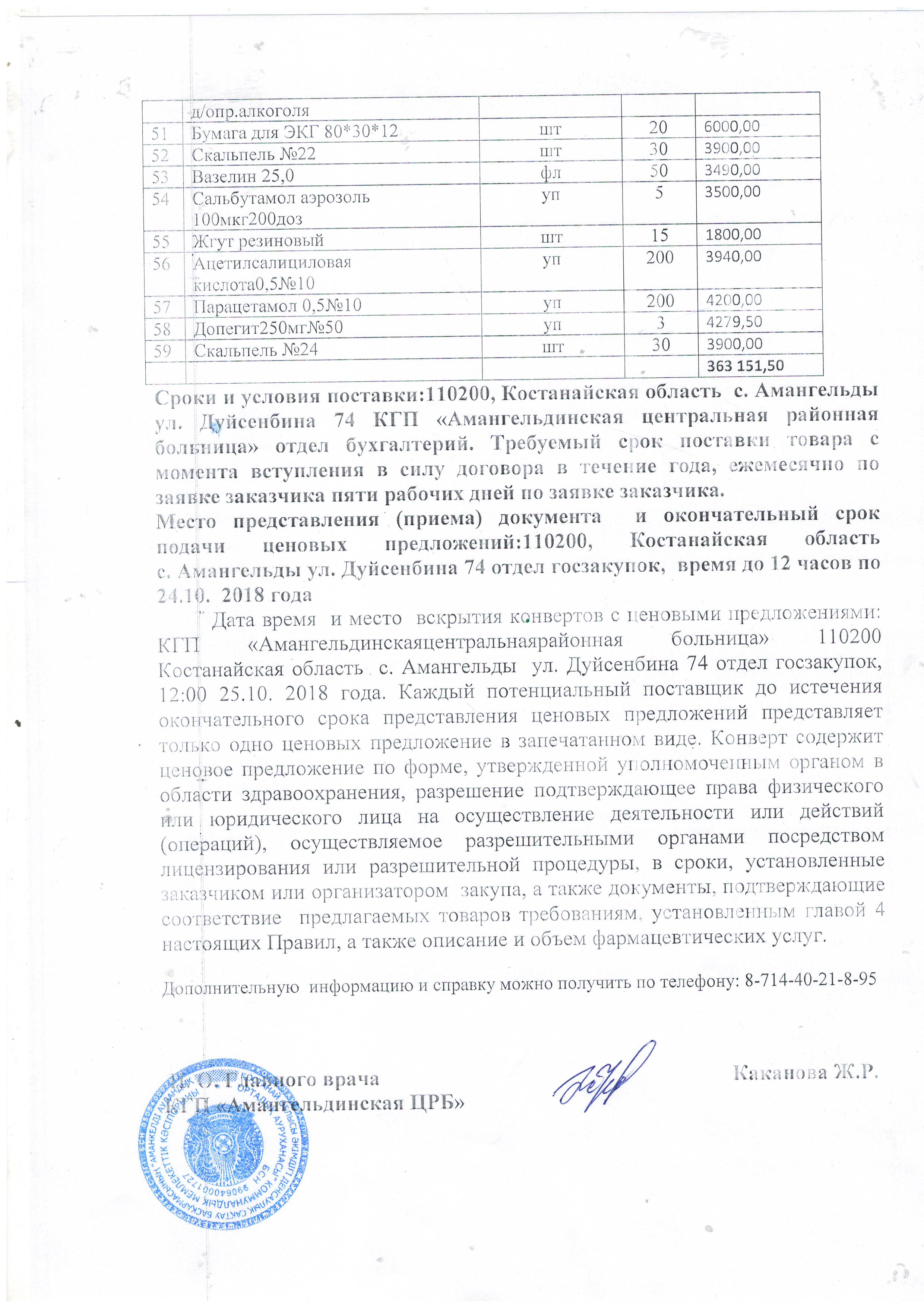 Объявление №16 от 17 октября о закупе способом запроса ценовых предложений