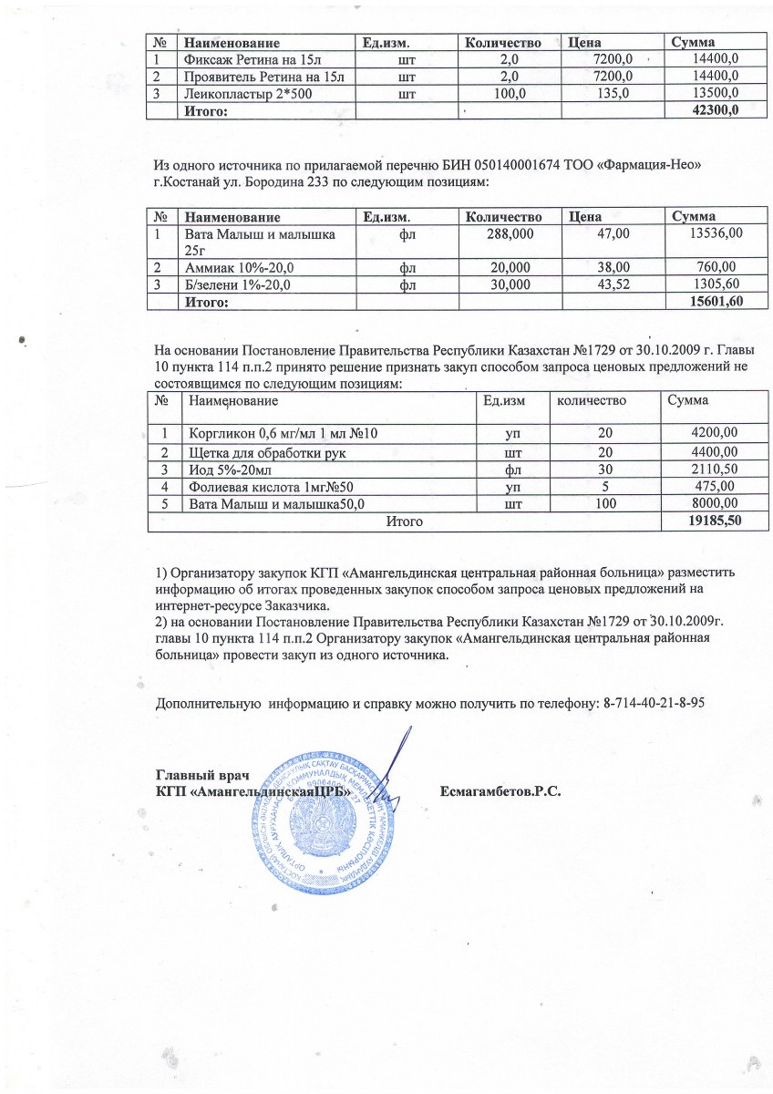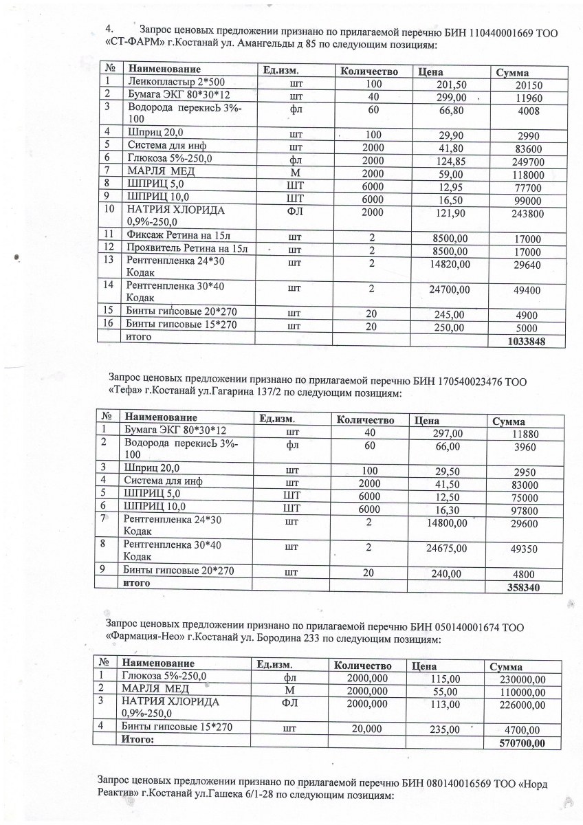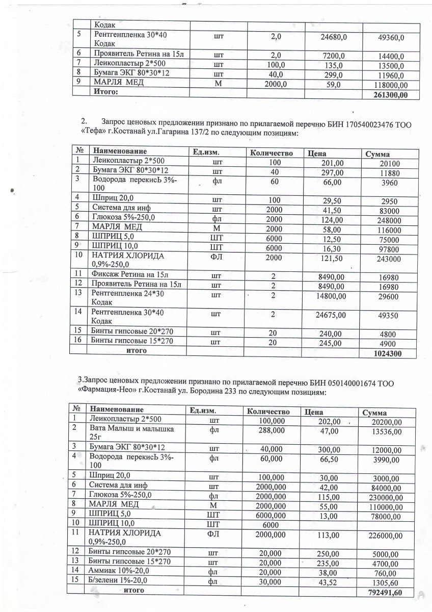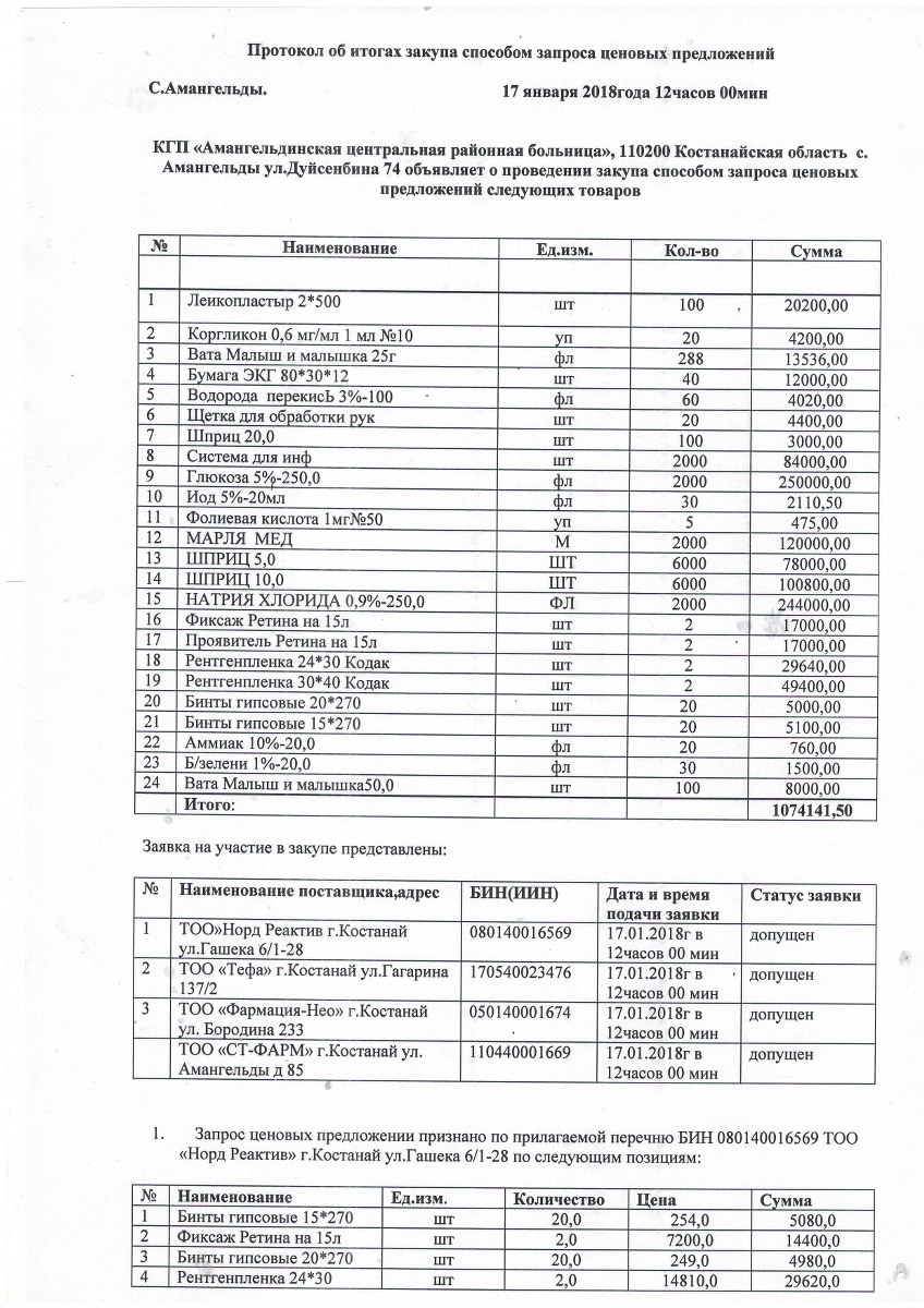 Протокол об итогах закупа способом запроса ценовых предложений от 17 января 2018 года
