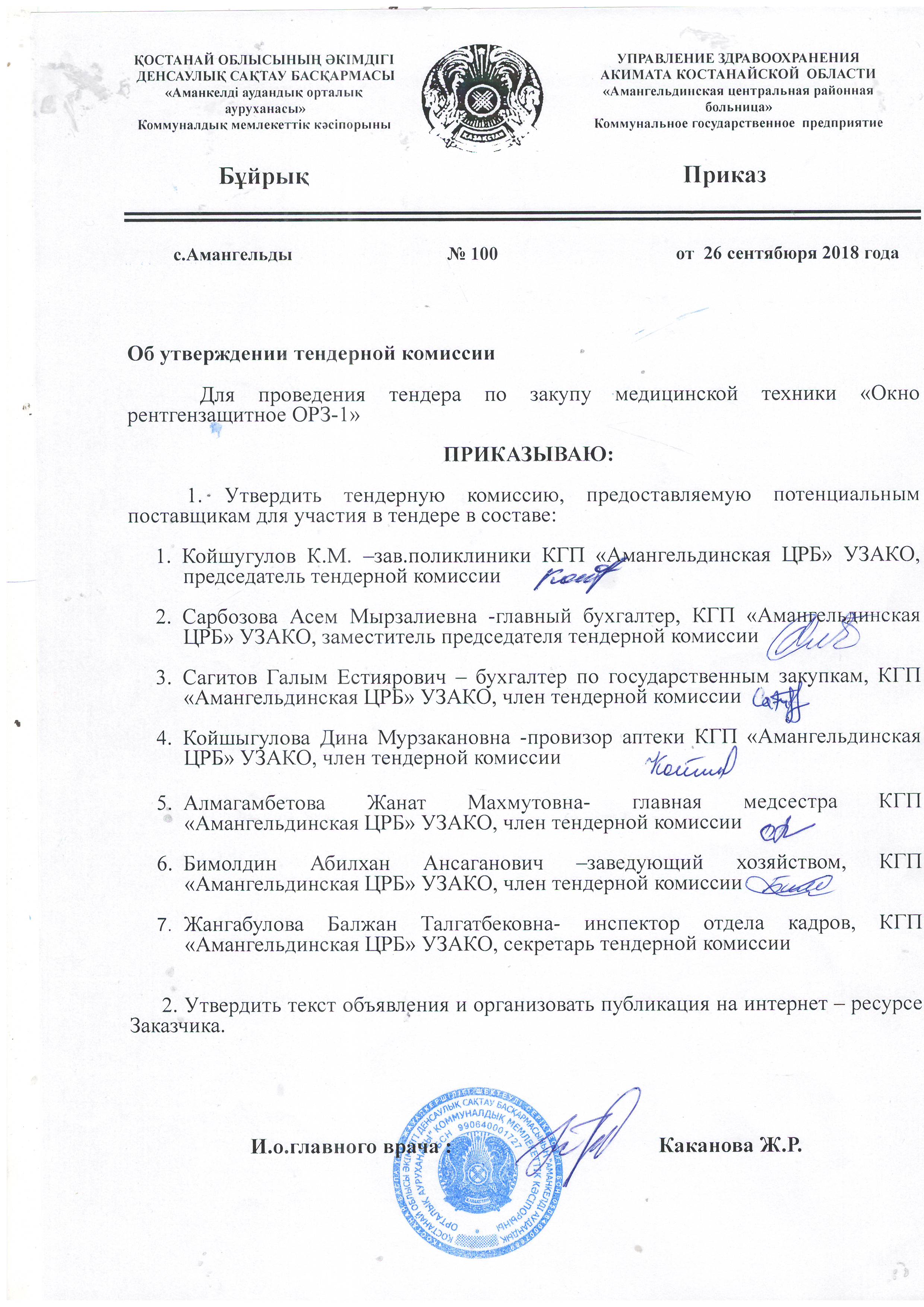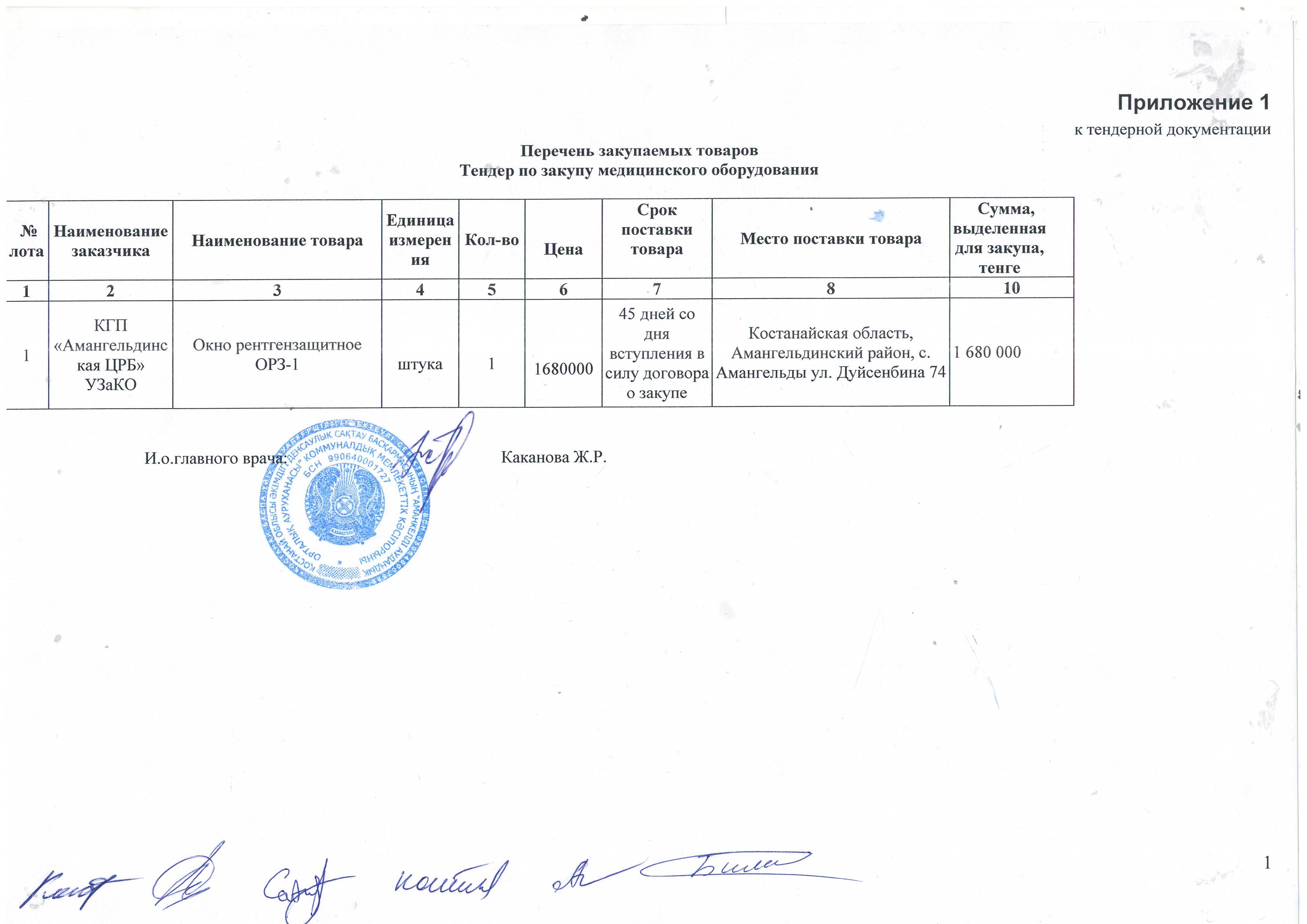 Тендерная документация для приобретения медицинского оборудования