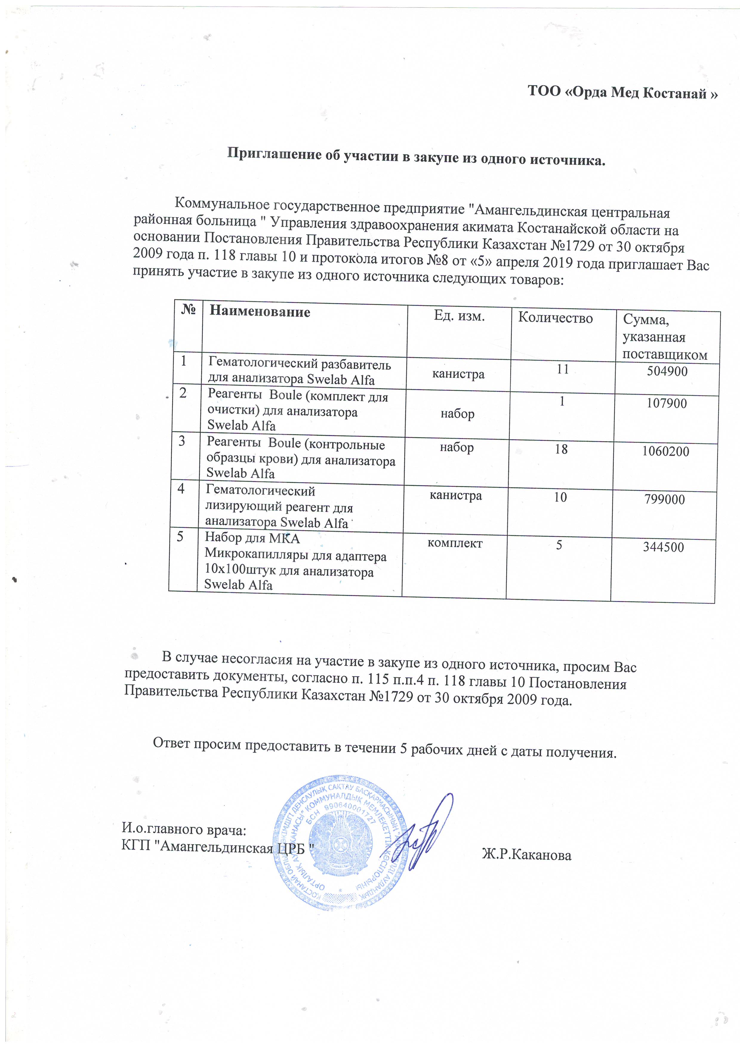 КГП «Амангельдинская центральная районная больница» Управления Здравоохранения акимата Костанайской области