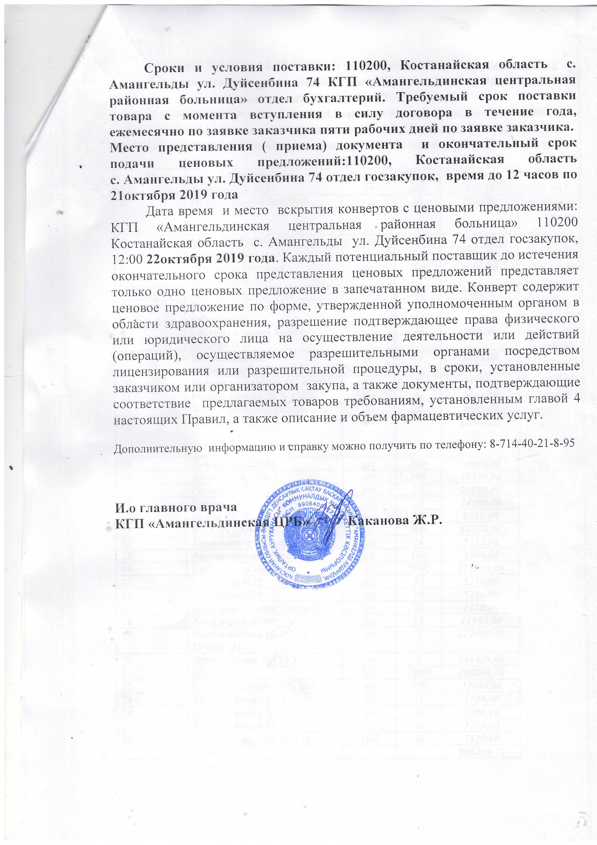 КГП «Амангельдинская центральная районная больница» Управления Здравоохранения акимата Костанайской области