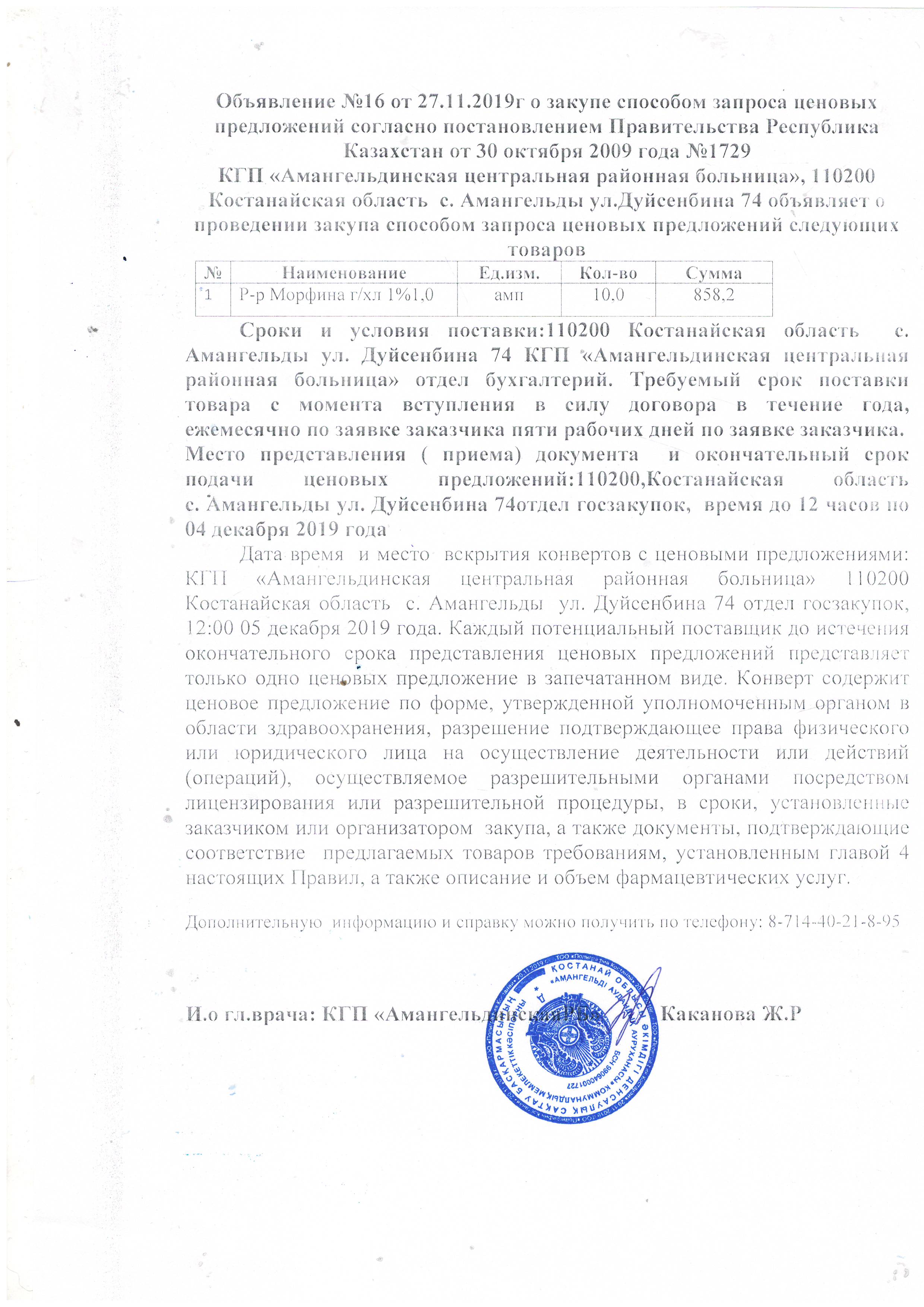 Объявление №16 от 27.11.2019