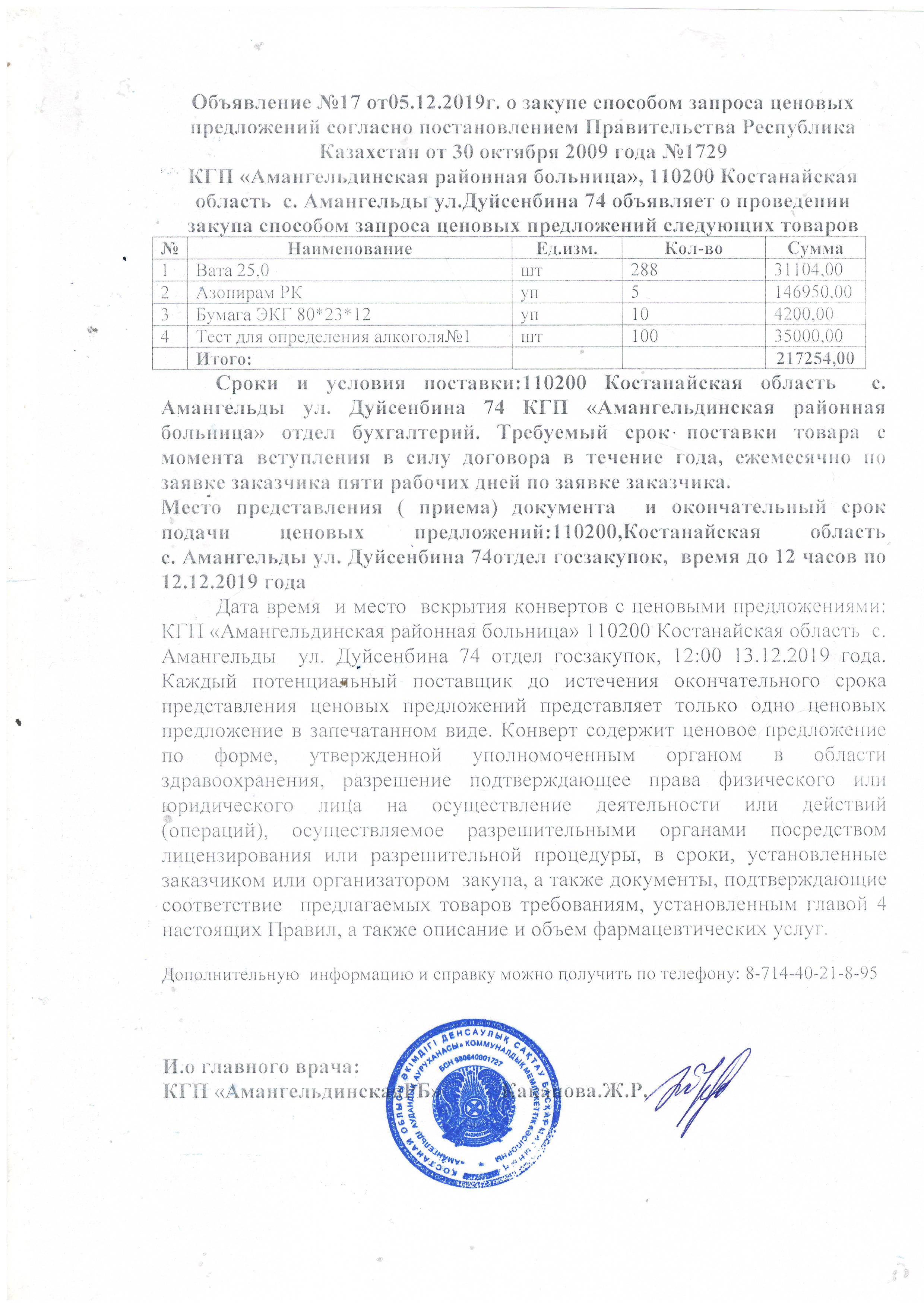 Объявление №17 от 05.12.2019