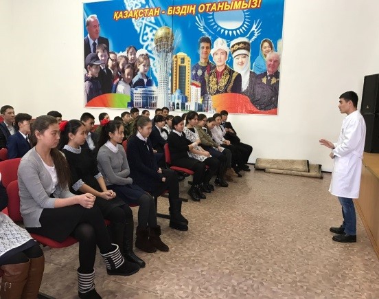 В общеобразовательных школах фельдшер психиатр-нарколог Н.Сатмурзина, врач общей практики П.М.Канафина, врач общей практики Д.Г.Акбайзенов провели лекции, с показом видеоролика влияния на травматизм поведенческих факторов риска (употребление алкоголя, наркотиков).