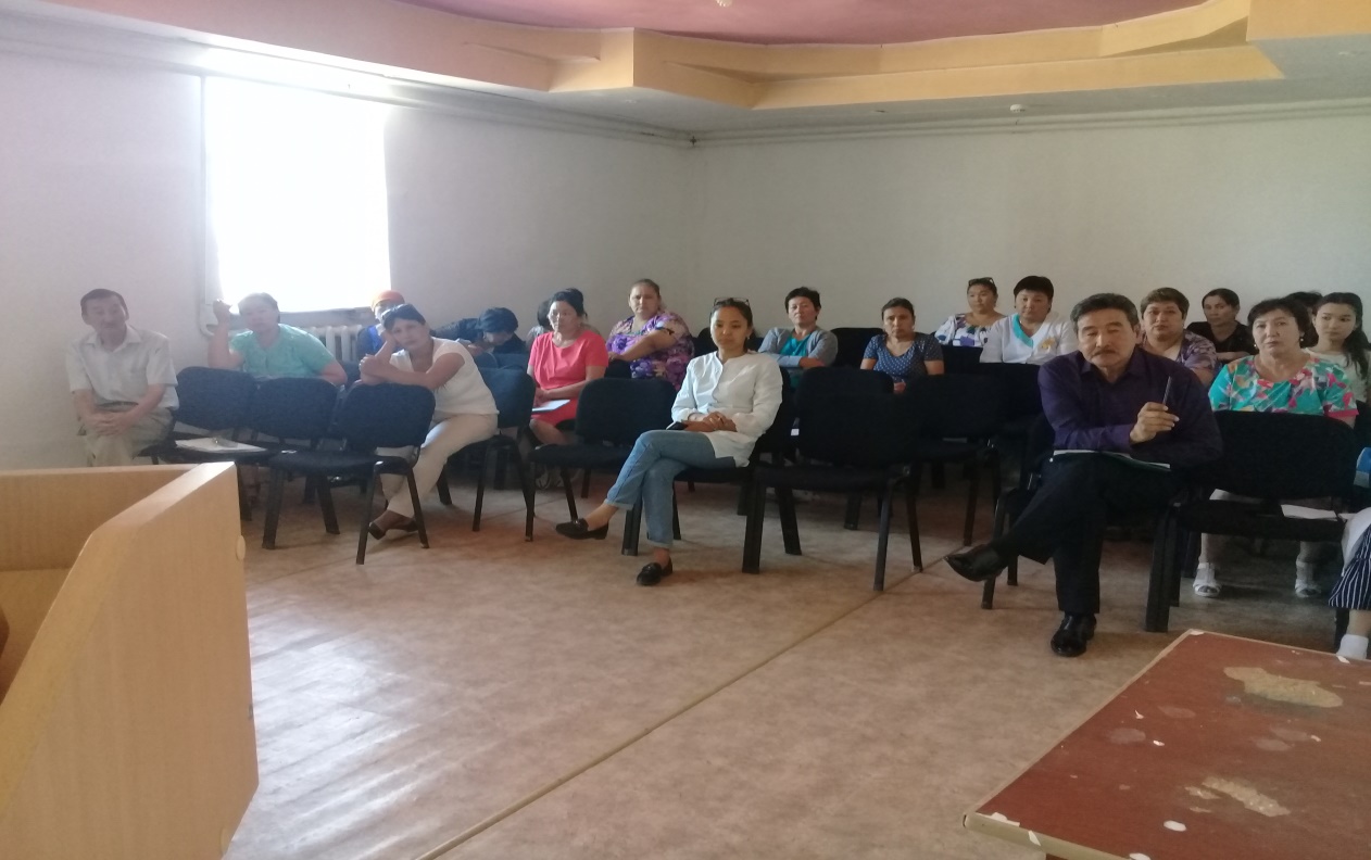 - «Анализ скрининговых осмотров детского и взл\рослого населения за 7 месяцев 2018 года».Докладчик:Старшая медсестра участковой службы-Сатмурзина Н. районный педиатр Жумагалиева Ж.К.