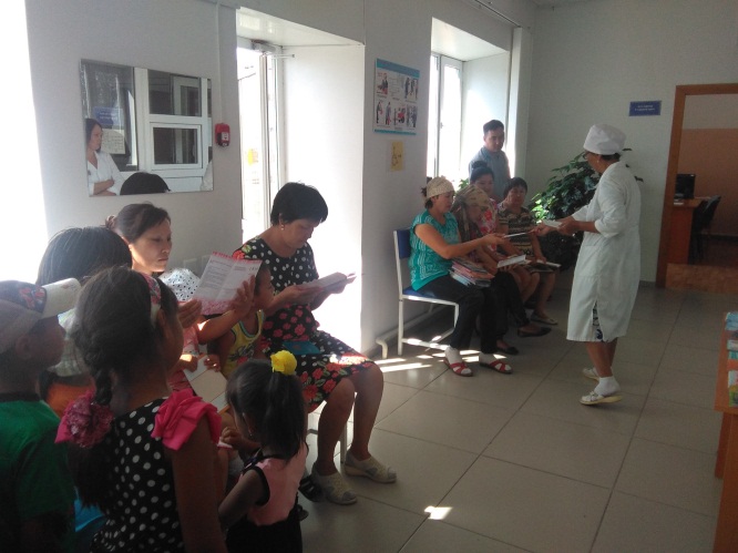 В рамках реализации плана мероприятий Государственной программы развития здравоохранения «Денсаулық» на 2016-2019 годы, 26, 31 июля а также 31 августа 2017 года в поселке: Урпек, Байгабыл, Кумкешу проводилась широкомасштабная акция «Денсаулық жолы» с выездом медицинских бригад в составе специалистов хирург-онколога , психолога, ВОП, окулиста, отоларинголога, педиатра, ЗОЖ с целью оказания медицинской и консультативной помощи сельскому населению по вопросам профилактики сахарного диабета, онкологических, сердечно-сосудистых заболеваний, снижения факторов, способствующих их возникновению, а также по вопросам ОСМС с раздачей информационно-образовательных материалов в количестве -184 . Всего присутствовало 72 человек.