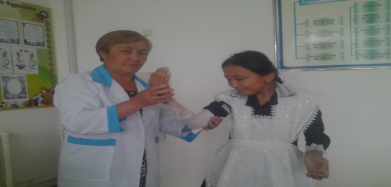 В дошкольных учреждениях «Жупар», «Каламкас », а также в школах посёлка Урпек, Байгабыл, Кумкешу, Тасты медицинскими работниками дошкольных учреждений, медицинскими работниками школ, ВА, МП, ФАП были проведены лекции, тренинги на тему «Мы – за безопасность на дорогах!», оказании первой помощи при травмах.